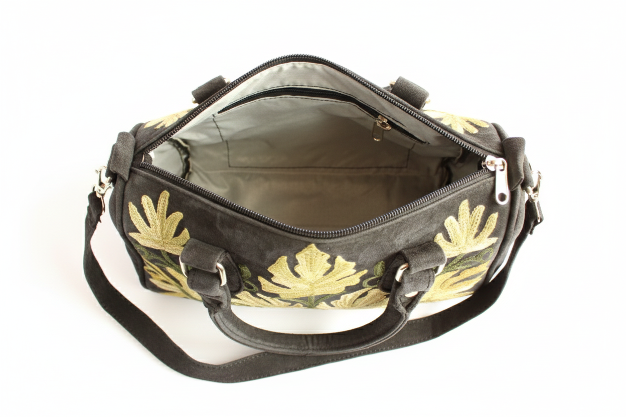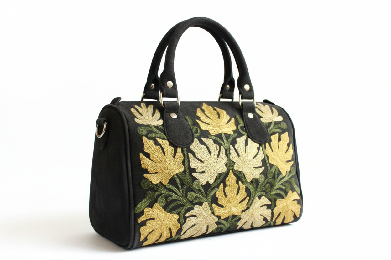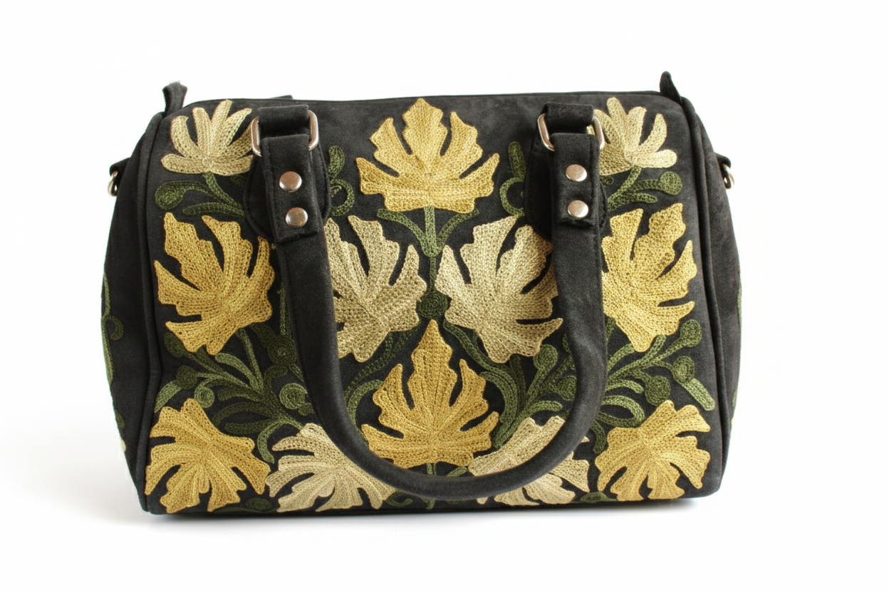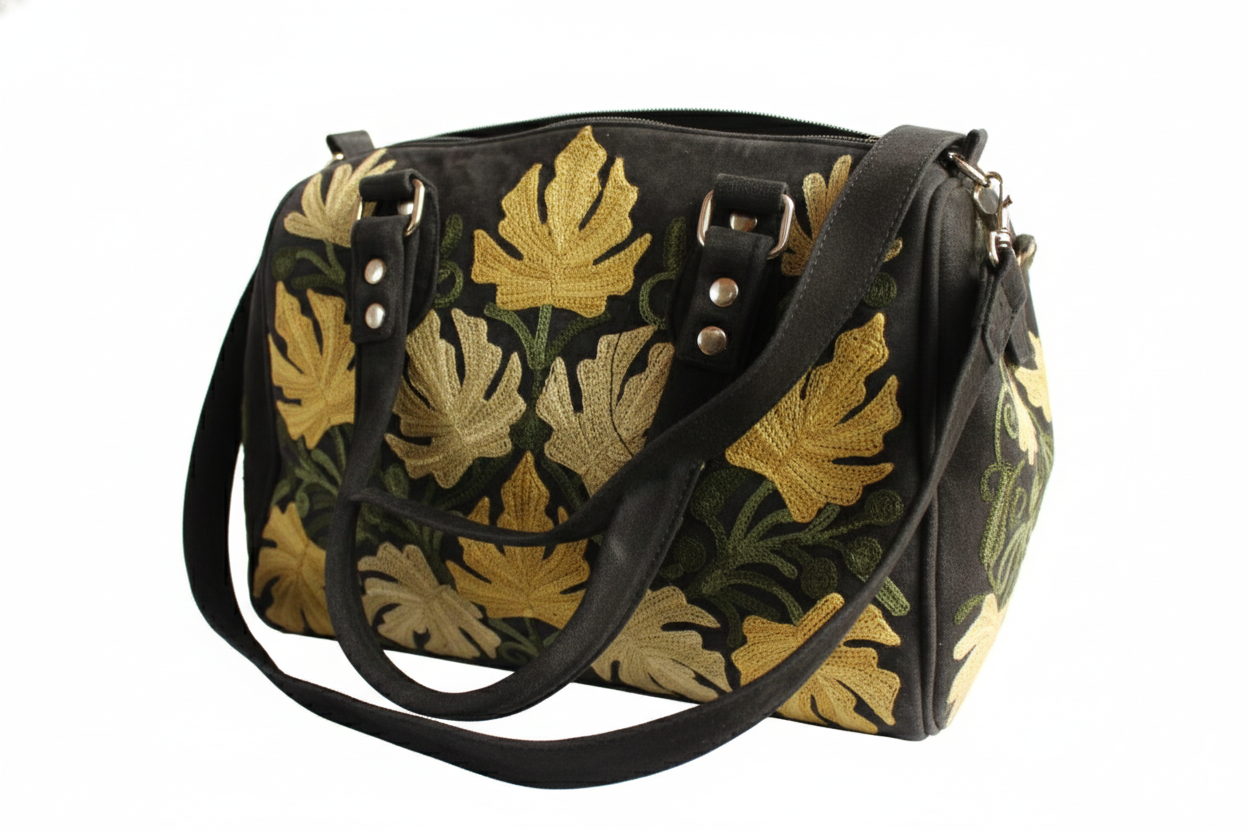 A beautiful embroidered handbag crafted with fine detailing, showcasing elegant designs that add a timeless charm. The spacious interior makes it perfect for carrying everyday essentials, while the sturdy handles ensure comfortable use. Ideal for daily wear, office, travel, or casual outings, this bag brings a blend of tradition and modern style.
